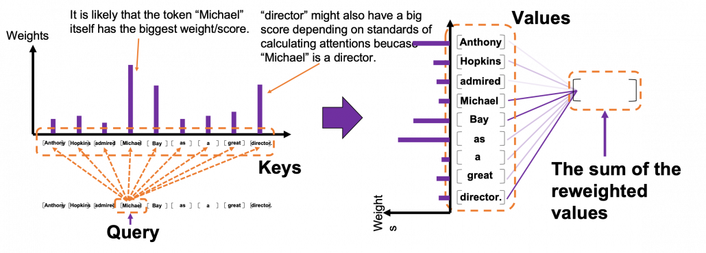 To ensure that the resulting scores are appropriately scaled, they are divided by the square root of the dimensionality of the key vectors. The scaled scores are then passed through a softmax function, which converts them into attention weights. These attention weights represent the relevance of each word in the context of the current word being attended to. Finally, the attention weights are multiplied by the value vectors to obtain the weighted sum of the value vectors, which captures the contextual information from the attended words. This process is repeated for each attention head, allowing the model to capture different types of relationships and dependencies within the input sequence.